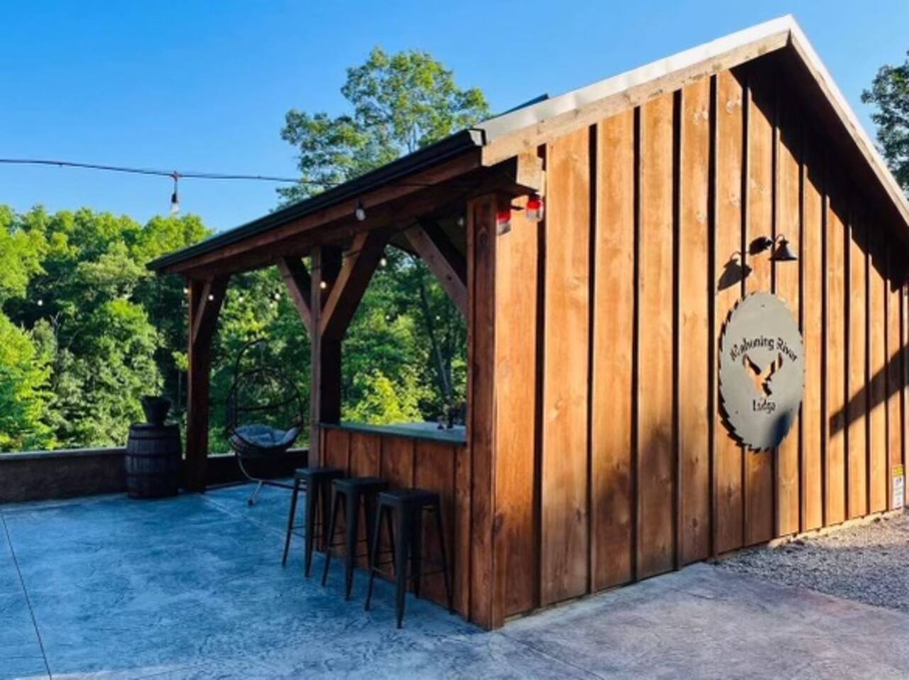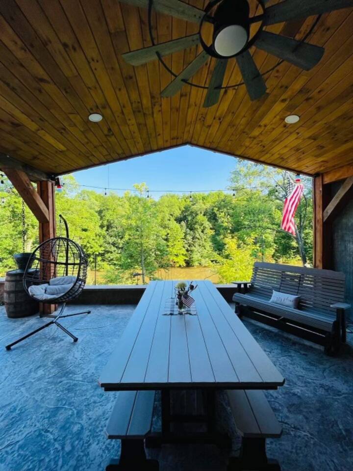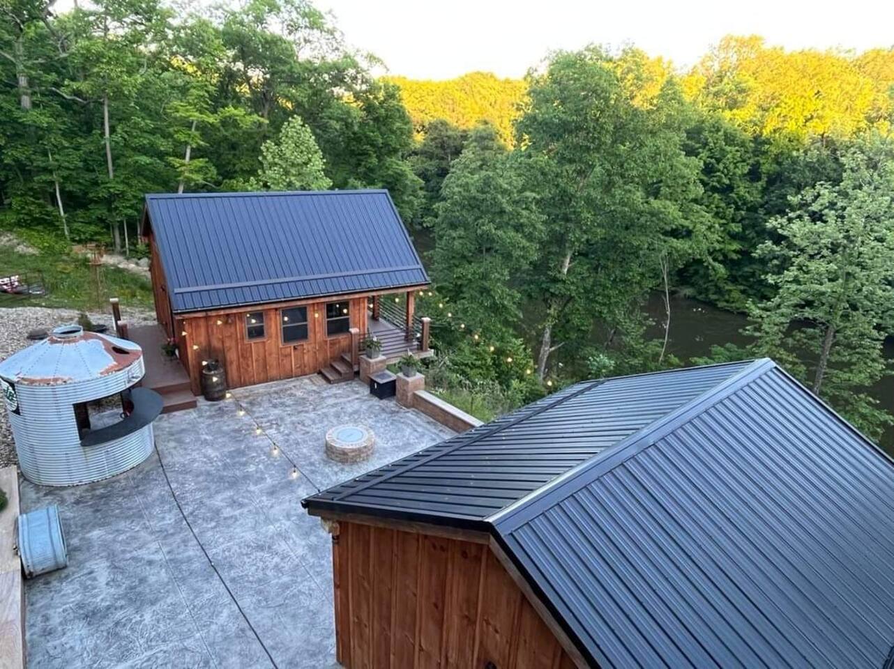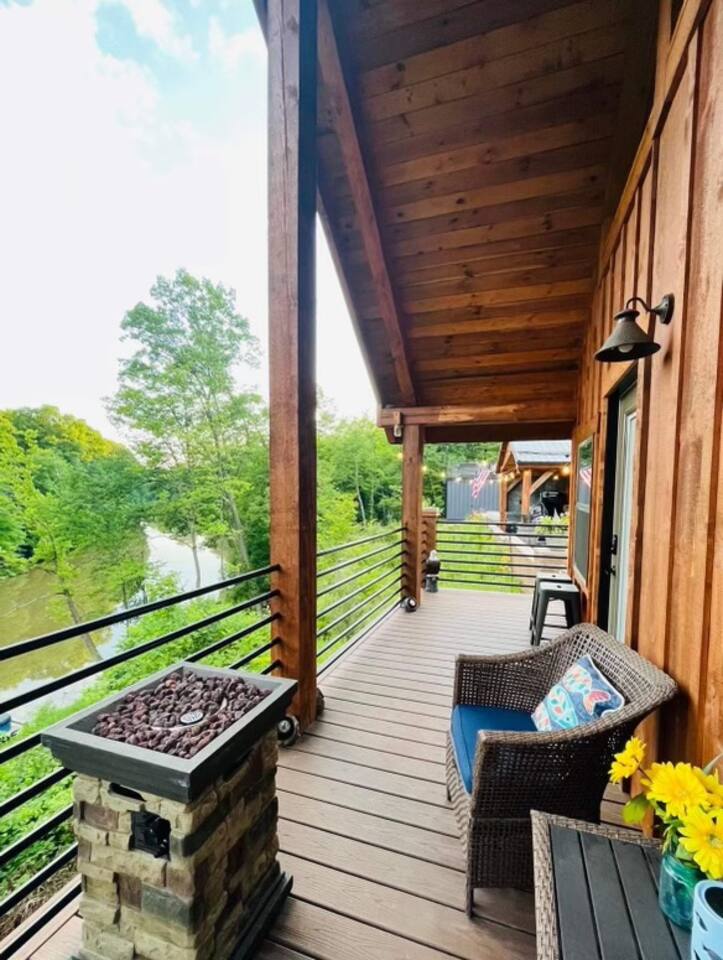 Get cozy and settle into this rustic timber framed cabin located on the Mahoning River near Lake Milton, OH. Enjoy the sounds of nature & views of the river while inside or outside. The Cabin features a covered back porch overlooking the river, a concrete patio with a Breeo fire pit, and a pavilion with comfortable seating to view the river. Kayaks & life jackets are available on site for a peaceful and scenic trip on the river. This is the perfect destination for a romantic getaway.