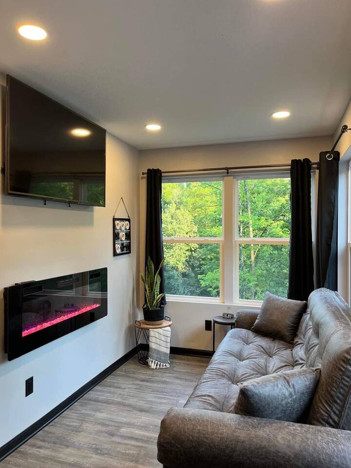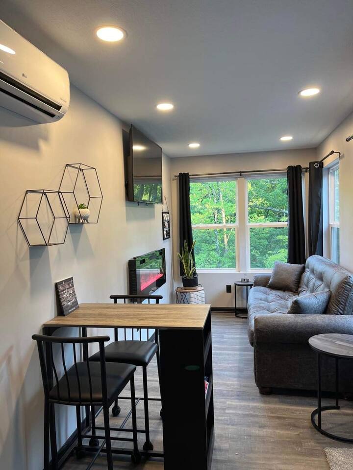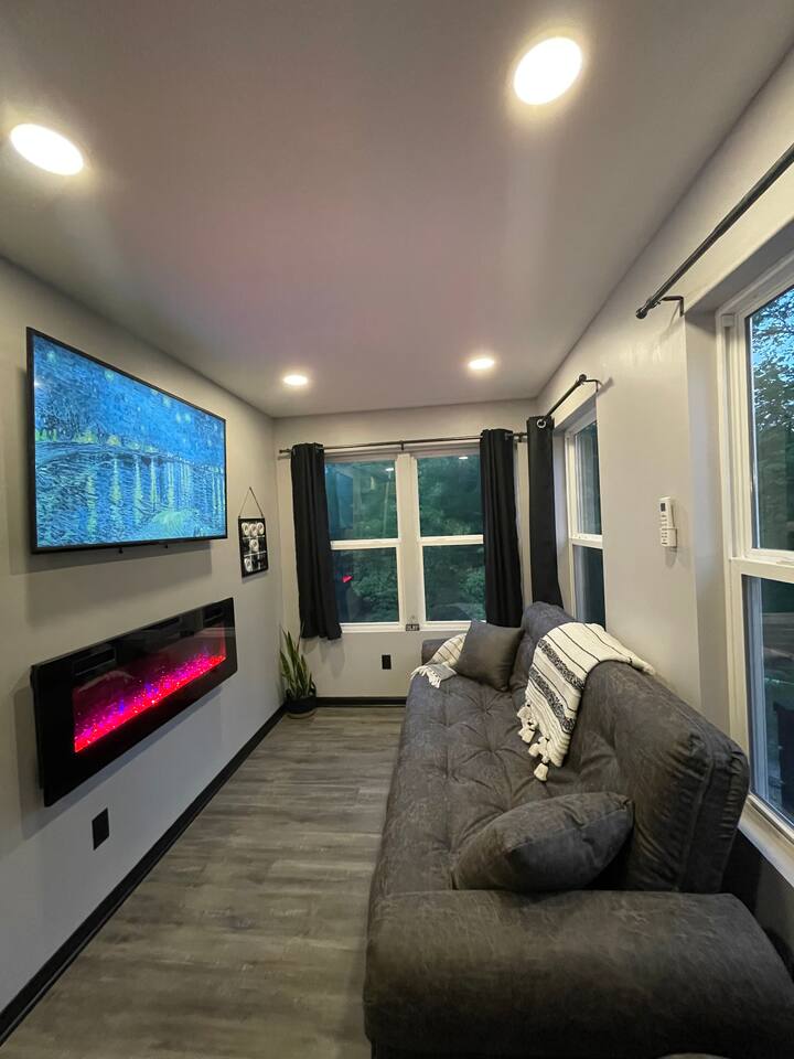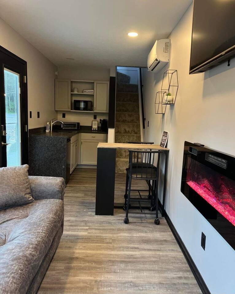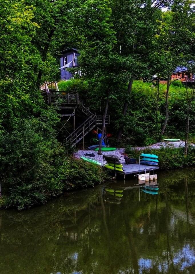 You'll love this unique & romantic escape located on the Mahoning River near Lake Milton, OH. The container features two floors & is perfect for a couples getaway or a business trip. Upstairs you will find a full size bed & bathroom area with a custom tiled shower & access to the walk out patio with a hot tub. This is the perfect spot to enjoy views of the river & sounds of nature. Relax downstairs in the living area or take advantage of the complimentary kayaks & take a trip on the river.